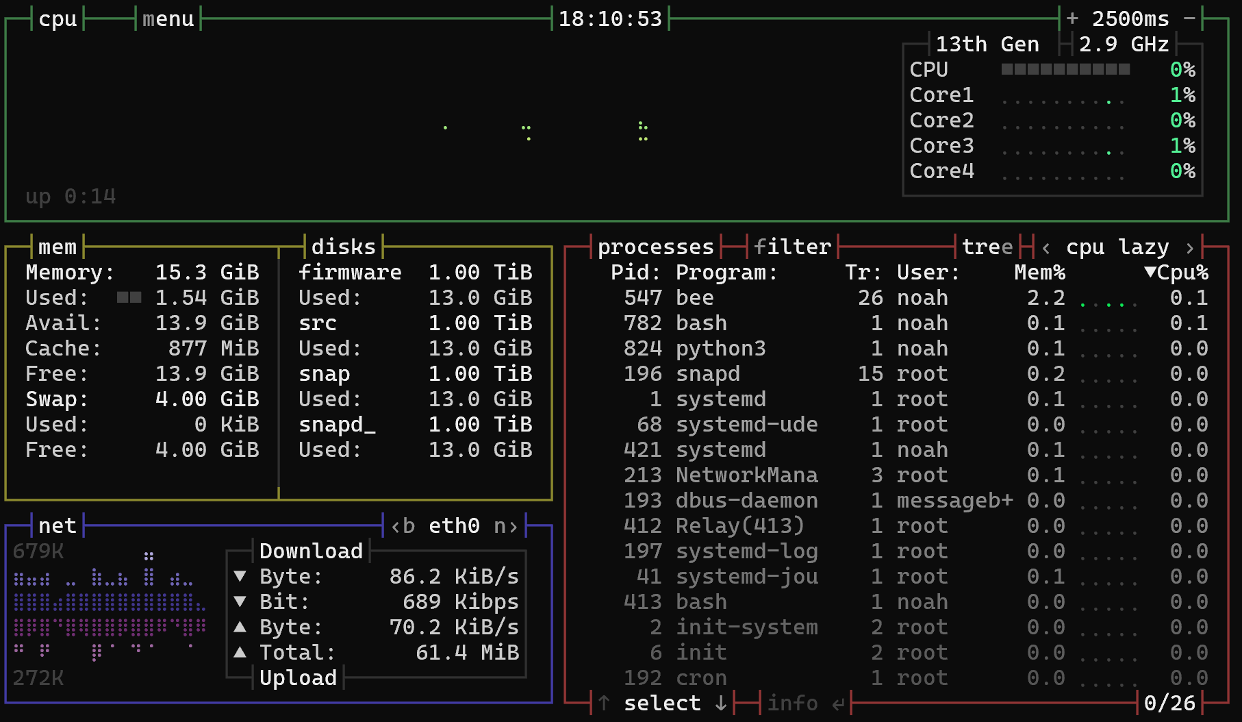 After installation, we can launch it with the bashtop command: